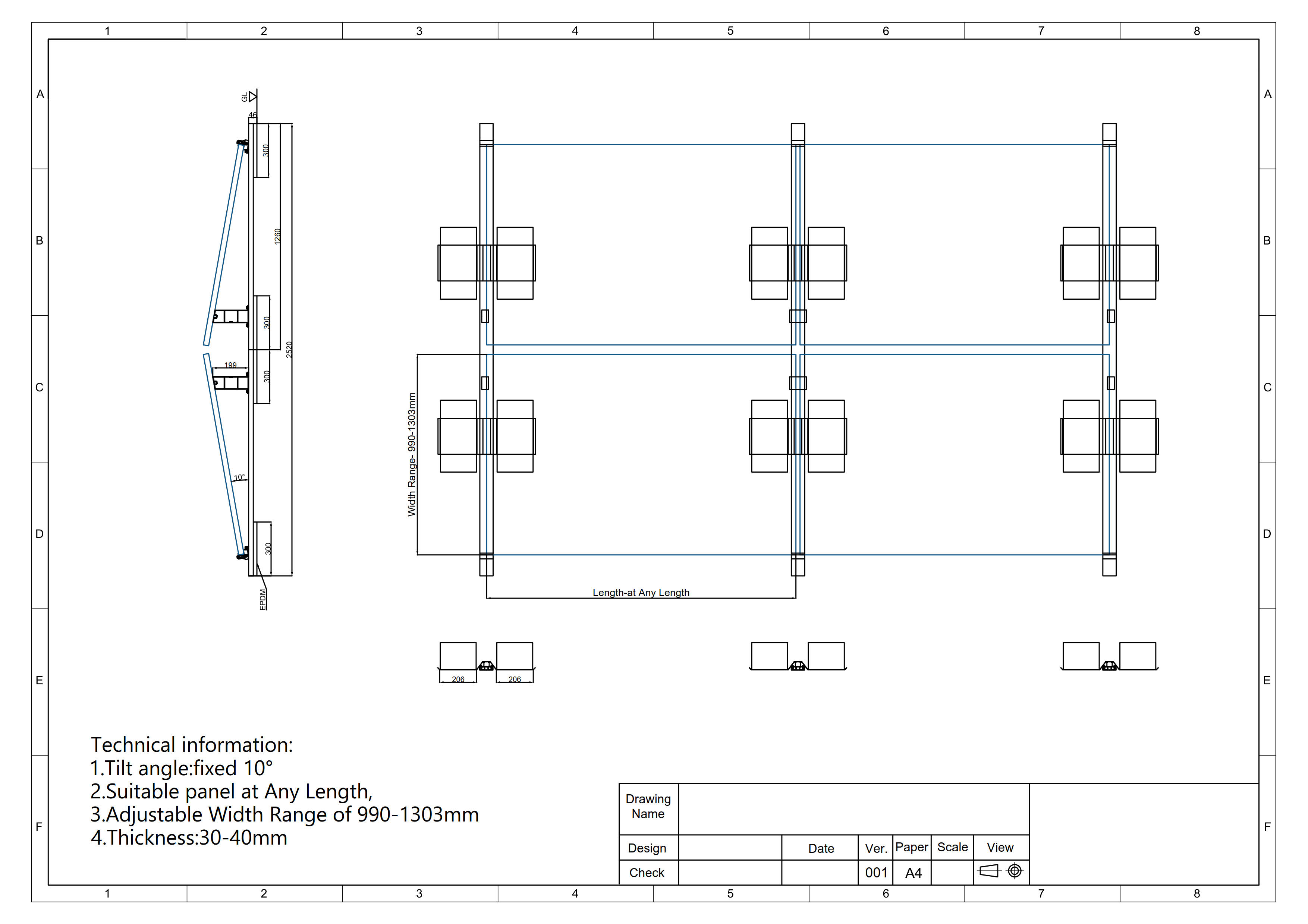 Flat Roofs Set (For 4 Panels ) Direction:Universal for South-North and East-West direction