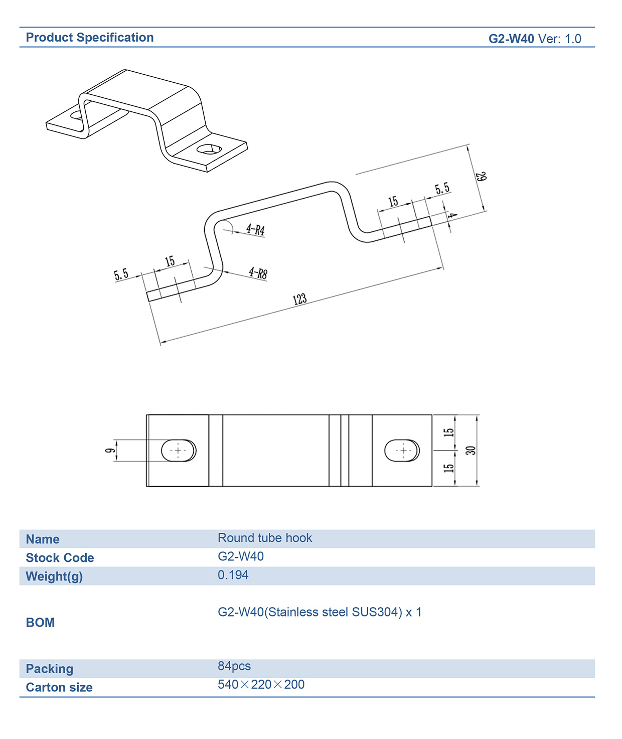 Square Tube Hook / Materials: SUS304 / Suitable for square tube width ≤40mm