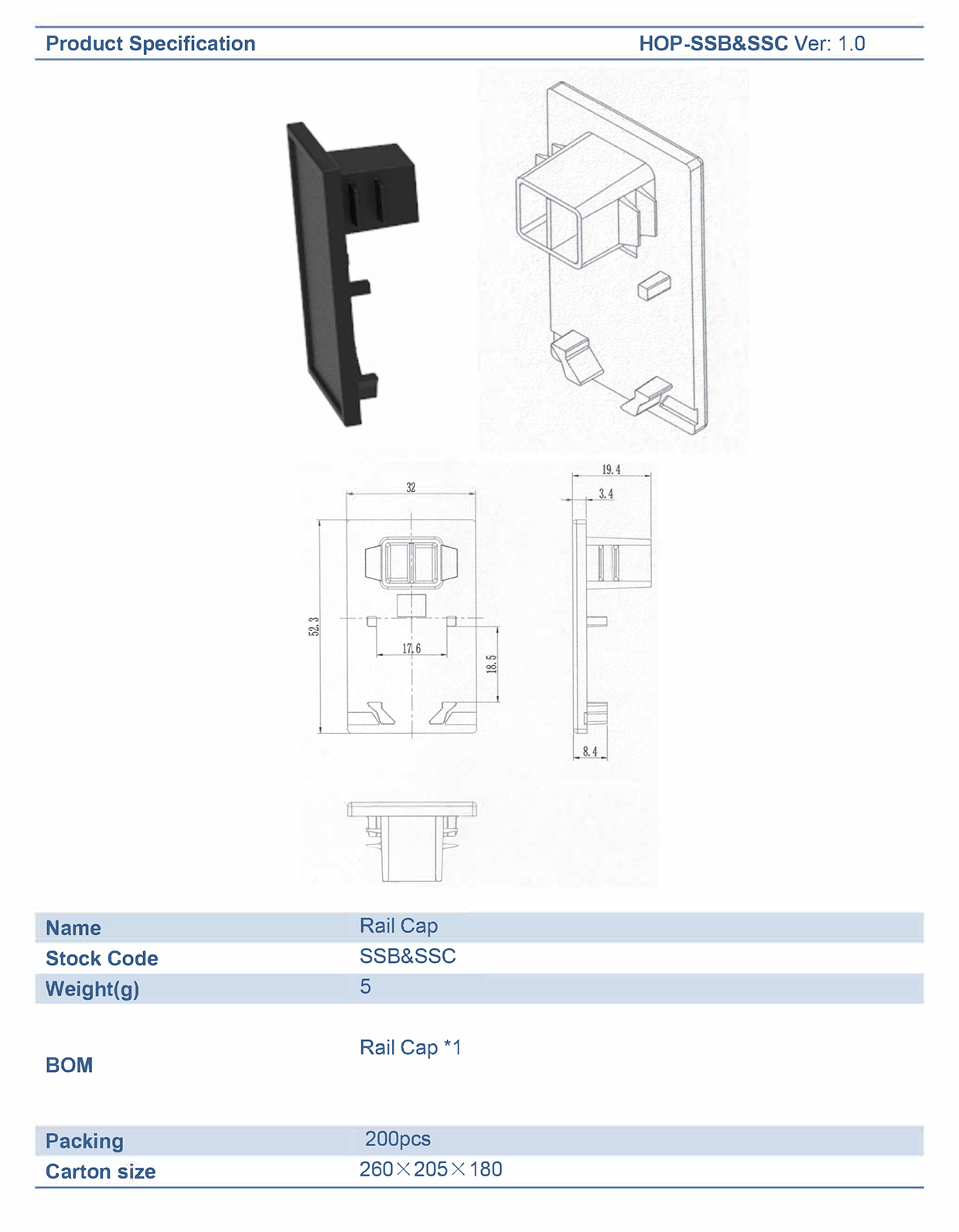 End cap for RA-SSC rail Color: Black / For Slanted roof and Flat roof | HOP-K33-0052
